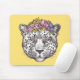 Dieses Ausrüstungsbeschreibungen, die ein Leopard in einem Blumenhalo kleidete.
