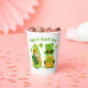 Dieser niedliche Papierbecher aus dem St. Patrick's Day zeigt vier Zwerge, die wie Kobolde gekleidet sind und grüne Kleeblätter tragen, mit einem Regenbogen Glücksgold und vielem mehr. Oben in grüner Schrift heißt es: "Happy St. Patrick's Day!" Entworfen von Susan Coffey.