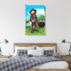 3D digitales Rendering eines charmanten kleinen Koboldes, Goldtopf und Kleeblatt auf blauem Himmel und grünem Wiesenhintergrund