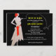 Illustration vintage intégrale d'un aileron à la mode habillé se tenant avec une main sur sa hanche et une cigarette dans l'autre main. Un courant de fumée de la cigarette forme courber, tordant, ligne décorative. Notre invitation de partie de thème d'aileron des années 1920 ou de thème de jazz peut être customisée à n'importe quel événement si c'est une fête d'anniversaire ou partie d'entreprise. Choisissez juste vos propres syles de police.