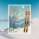 Bonjour des montagnes enneigées des Arcs, France, en Europe ! Nous espérons que vous passerez de merveilleuses vacances à ski. Cette carte postale présente un magnifique paysage montagneux bleu-gris avec des planches de ski rétro dans un motif tribal orange. Toutes les phrases de texte peuvent être customisées pour vous convenir!
