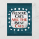 "Secourez les chats sont les meilleurs chats" est un design de texte mignon en turquoise avec du texte en noir et rouge, avec une forme d'accent blanc et des points blancs texturés blancs qui l'entourent.