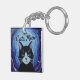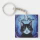 Ce porte - clé fantaisiste présente un chat tuxedo souriant entouré d'un beau ciel bleu violet blanc fini comme une peinture à l'huile.