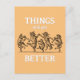 Nous avons tous besoin d'encouragement dans les moments sombres. Donnez à vos amis une lueur d'espoir avec cette charmante carte présentant une illustration vintage d'animaux dansants et un message optimiste. Cela va sûrement leur remonter le moral. Et ils remonteront le vôtre.