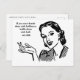 Laisse W.C. Les champs le disent pour vous. Carte postale amusante avec une femme rétro gesturant avec sa main. C'est parfait pour rester en contact ou juste pour dire bonjour.