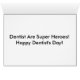 Faites savoir au dentiste de votre vie à quel point ils sont géniaux ! Une dent souriante de style kawaii portant une cape rouge sourit sur cette carte. Le texte de couverture avant dit, "La dent est dehors" tandis que l'intérieur dit, "Les dentistes sont des super héros ! Bonne Journée des Dentistes !" La couverture et le texte intérieur sont personnalisables et peuvent être personnalisés selon vos besoins !