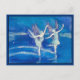 Deux fées bleues dansent et patinent sur la glace tandis que la neige tombe autour d'elles. Aquarelle originale.