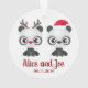 Un ornement de Noël avec deux mignons pandas portant un chapeau de santa et des rennes de nez roux de Rudolph. Il est personnalisé avec vos noms et votre date.