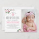 Invitation au Christening personnalisable avec photo représentant des fleurs d'aquarelle rose.