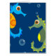 Illustration d'un mignon couple de chevaux de mer caricaturés nageant sous l'eau avec des bulles. Image disponible sur divers cadeaux et produits.