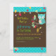 Petit hibou mignon, en bleu aqua sur une minuscule branche fleurie. Embellisté avec drapeaux et pots de polka, étoiles. Le arrière - plan bleu Turquoise + chocolat est personnalisable. Vous pouvez choisir n'importe quelle couleur !