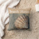 Le décor de la maison à thème de la plage lance un oreiller avec une belle image de plage tropicale d'un grand coquillage coloré de chaque côté, y compris les mots Beach House que vous pouvez personnaliser si vous voulez. Conçu comme un accessoire de déco maison pour apporter un peu de couleur et de caractère à votre salon, chambre familiale ou salon de maison de façon décorative.