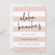 Chic invitation week-end plage est parfait pour les escapades en bachelorette, les voyages pour filles et plus encore! Le design d'été comprend des "plages d'aloha" en lettres manuscrites émiettées sur un arrière - plan rayé rose et blanc. Personnalisez avec vos détails d'escapade de plage dans un mélange chic de serif classique et de typographie sans serif moderne.