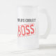 Les Mugs De Bières Boss Les Plus Coolles Au Monde. Meilleure idée cadeau d'appréciation pour le bureau le jour du patron. Texte et couleurs d'entreprise personnalisables. Design de timbre en caoutchouc rouge.
