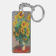 Porte - clé représentant la peinture à l’huile de Claude Monet Bouquet of Sunflowers (1881). Beaux tournesols dans un vase bleu au-dessus d'une table rouge. Un grand cadeau pour les amateurs d'impressionnisme et d'art français.