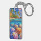 "Tropical Tide Treasures" Un paysage marin tropical éclatant au-dessus et au-dessous de la ligne d'eau, ce design présente un littoral éclairé par le soleil, avec des palmiers et des nuages brillants au-dessus d'un océan limpide, tandis qu'au-dessous des vagues se trouve une fascinante collection d'oursins et d'étoiles de mer aux couleurs joyaux. Le design respire la chaleur, la tranquillité et un sentiment d'émerveillement sous-marin.