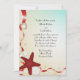 Une belle faire-part de mariage de coquillages idéale pour les mariages de plage, les mariages de destination tropicale, les douches nuptiales, les invitations aux répétitions de tenues et les invitations au brunch post-mariage. Le arrière - plan turquoise à sable a des rubans rouges et des coquillages ancrés dans un coin par un poisson étoilé rouge.La carte est facile à customiser avec votre libellé, police, couleur de police et choix de six types de papier.