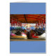 Des voitures Dodgem de différentes couleurs avec Union Jacks à un parc des expositions d'anglais