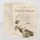 Die Hochzeitseinladung sieht so aus, als wäre sie auf altes, kratzes Papier gedruckt worden und strahlt einen nostalgischen Charme aus. Unten verlassen ist ein Vintages Foto einer eleganten Frau, die auf einem Halbmond liegt und in die Ferne schaut. Das Bild ist in Sepia-Tönen gehalten und verleiht der Einladung eine romantische und geheimnisvolle Atmosphäre. Das gesamte Design der Einladung strahlt eine zeitlose Eleganz aus und lasse den Gästen, sich im Voraus zu fühlen, dass diese Hochzeit etwas ganz Besonderes sein wird. Sie können die Namen, Daten und Texte einfach ändern, indem Sie auf den "Personalisieren Button" klicken.
