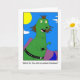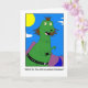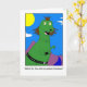 Ein Cartoon Dinosaurier sieht überrascht aus. Bildunterschrift: Was nennt man lesbische Dinosaurier? Man kann den Insiderwitz immer ändern - z.B. dem Empfänger einen Suffix mit 'saurus' geben.