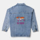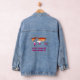 Veste Denim pour femmes avec la carte du monde dans la couleur du drapeau de la fierté lesbienne, un design; le texte 'Let's Change the World' est un texte modèle et peut être changé.