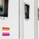Die "rosa" lesbische Fahne besteht aus sechs Rot- und Rosatönen und einem weißen Bar in der Mitte. Das ursprüngliche Design, bekannt als Lippenstift lesbische Fahne, enthält einen roten Kuss und wurde im Weblog Dieses Lesben Leben im Jahr 2010 eingeführt. Sowohl die "rosa" als auch die lipstische lesbische Flagge repräsentieren "homosexuelle Frauen, die einen weiblicheren Geschlechterausdruck haben".