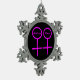 Dieses phantastische Ornament ist für Lesben konzipiert. Es verfügt über zwei rosa Frauensymbole, die nebeneinander stehend sind. Der Hintergrund ist schwarz, und in jedem der Symbole ist ein anpassbarer rosa Text vorhanden.