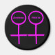 Dieser reizende Magnet ist für Lesben konzipiert. Es verfügt über zwei rosa Frauensymbole, die nebeneinander stehend sind. Der Hintergrund ist schwarz, und in jedem der Symbole ist ein anpassbarer rosa Text vorhanden. Überraschen Sie Ihre Kunst mit diesem hübschen personalisierten Geschenk.