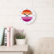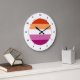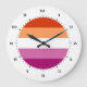 Rundwanduhren mit der lesbischen Stolzflagge. Orangefarbene, weiße und rosa Fahne der lesbischen Stolzbewegung
