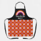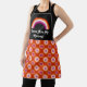 Schürze für Frauen mit einem Bild einer lesbischen Stolperflagge und einem Regenbogen und wiederholtem nahtlosen Muster der Blume; rosa, weiß und orange, auf schwarzem Hintergrund, mit einer anpassbaren Textvorlage für Ihren eigenen Namen oder Ihre eigene Nachricht