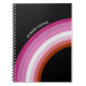 Schönes Geschenk für Lesben mit den hübschen lesbischen Fahnen-Farben, die in einem rosa und roten Regenbogen geformt sind. Stolze schwule Frau mit Monogramm Notizbuch.