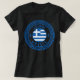 Lesbos, T-shirt noir féminin de Grèce arborant le drapeau national de la Grèce à l'intérieur d'un symbole du cercle motif grec antique. Profitez de porter ce T-shirt pendant que vous êtes en vacances sur la belle île de Lesbos ou offrez-le comme souvenir cadeau.