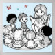 Bringen Sie Kinder mit diesem bezaubernden Farbposter, das kleine Kinder darstellt, die in einem Lesekreis auf einem Teppich versammelt sind, während ein Erwachsener ihnen ein Buch liest. Es zeigt eine Vielzahl von Kindern, die einer Geschichte aufmerksam zuhören. Ein paar winzige Schmetterlinge prägen dieses Design.