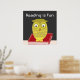 Erziehungsposter zum Lesen .Eine freundliche goldene Eule mit rotem Buch und Brille .Digitale Kunst von Alma Wad . Ideal für Schulen, Bibliotheken, Buchhandlungen . Sie können es mit Ihren eigenen Worten anpassen.