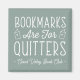 Dieses niedliche Nerdy-Design für Buchliebhaber, Buchwürmer, Autoren, Autoren, Buchklubfreunde oder begeisterte Leser enthält das lustige Zitat "Lesezeichen sind für Quitters" mit zwei kleinen Buchabbildungen auf einem staubigen, schlauen grünen Hintergrund. Personalisieren Sie sich mit einer Zeile eigenen Textes unten, perfekt für Ihren Buchklub, Buchladen oder Veranstaltungsnamen. Mit diesem niedlichen Design für den Tag oder die Woche, das Ende des Schuljahres oder an den Feiertagen, schenken Sie einen Freund des Buchclubs, Ihre Kinderbibliothekarin, Bibliotheksspezialisten, Leseexperten oder Bibliothekswissenschaftler.