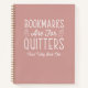 Dieses niedliche Nerdy Design für Buchliebhaber, Buchwürmer, Autoren, Autoren, Buchklubfreunde oder begeisterte Leser enthält das lustige Zitat "Lesezeichen sind für Quitters" mit zwei kleinen Buchabbildungen auf einem staubigen Rose rosa Hintergrund. Personalisieren Sie sich mit einer Zeile eigenen Textes unten, perfekt für Ihren Buchklub, Buchladen oder Veranstaltungsnamen. Mit diesem niedlichen Design für den Tag oder die Woche, das Ende des Schuljahres oder an den Feiertagen, schenken Sie einen Freund des Buchclubs, Ihre Kinderbibliothekarin, Bibliotheksspezialisten, Leseexperten oder Bibliothekswissenschaftler.