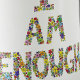 Très sympa, ma fille a adoré. Le modèle est existant. Je n'ai rien ajouté. J'espère que le texte résistera au lave-vaisselle.