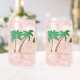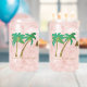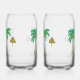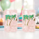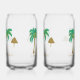 Mosaïque, dessin graphique, d'une île, avec deux cocotiers, et hutte, affichée avec la phrase "Summering In The Tropics"-en couleurs de, vert, jaune, turquoise, bleu, taupe, marron et noir.