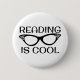 Zeigen Sie Ihre Liebe für das Ablesen mit diesem coolen pinback Knopfentwurf für die Buchliebhaber, der sagt, "lesend ist cool" mit einer stylized Grafik der Katzenaugen-Lesegläser.