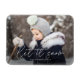 Wish friends and family happy holidays with a cute holiday photo magnet! The magnet features your horizontal photo with subtle snow flurries bordering the design. "Let it Snow" is displayed in a white, trendy calligraphy script with your family's name below.
