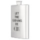 Stainless steel classic flask with a black funny alcohol quote LET THE EVENING BE GIN. The perfect gift for any gin lover.