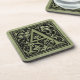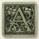 Charmanter dekorativer Brief Eine erste monogramm Kalligraphie Stil Typografie ersten Buchstaben in schwarz über Vintagen Avocado grünen Buch Futter mit von weißen Ginkgo biloba Blätter.
