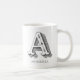 Maßgeschneiderte Tasse für Weißkaffee mit dem Buchstaben A in einzigartiger grauer Typografie. Fügen Sie Ihren Namen mit der Personalisierungsfunktion hinzu.