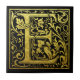 Charmanter Zierbrief E initiale Monogramm, Kalligrafie Stil Typografie, erster Buchstabe in Schwarz und Imitat Gold (Gelbtöne mit Highlights und Schatten zur Simulation metallischer Goldblattvergoldung Textur).