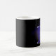 Mok met de letter E. (bijvoorbeeld je initiaal) Leuk als je naam met de E begint of die van een ander. Achter de letter is een raster en mysterieuze wolken met een licht die erop schijnt. De letter E is gevuld met een plaid patroon en een grijze rand erom heen. kleuren blauw, paars, geel en zwart.