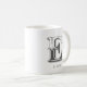 Maßgeschneiderte weiße Kaffeemaschine mit dem Buchstaben E in einer einzigartigen dunkelgrauen Typografie. Fügen Sie Ihren Namen mit der Personalisierungsfunktion hinzu.