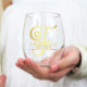 Letter F Monogram Bridesmaid Gift, Modernes Elegan Weinglas Ohne Stiel