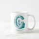 Maßgeschneiderte Tasse mit dem Buchstaben G in aquamariner Typografie. Fügen Sie Ihren Namen mit der Personalisierungsfunktion hinzu.