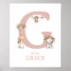 Letter G Monogram Boho Safari Animes Kinderzimmer Poster