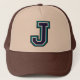 Monogramm-Kappe mit aquamarinem und lila Buchstaben J Anfangsalphabet